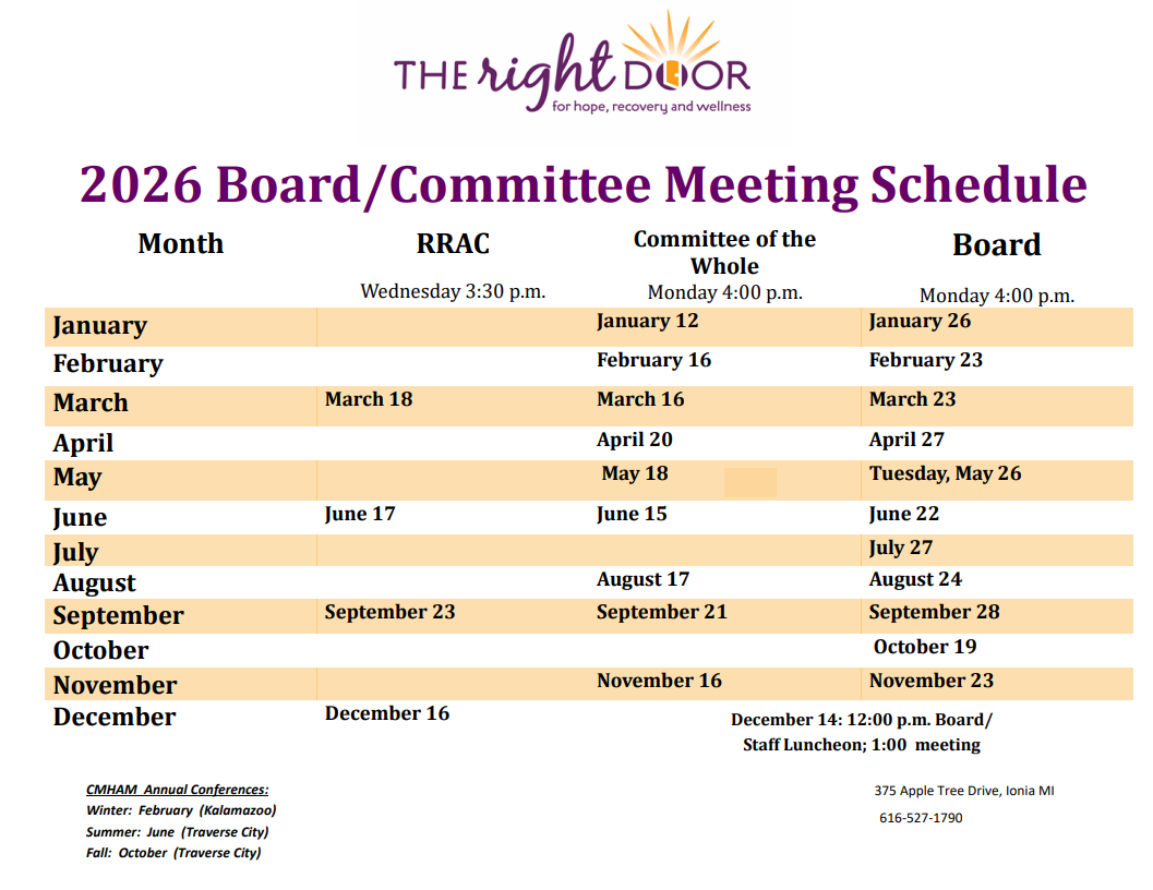 2026 Board Schedule